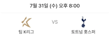 첫 번째 경기: 7월 31일(수) 오후 8시 - 토트넘 vs 팀 K리그